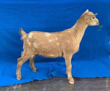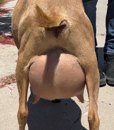 Dusty is a beautiful doe with a beautiful mammary system, who unfortunately is right at the height maximum. She is that right mix of power, depth, and dairy so we will see what happens next year. She does carry moon spots if that is something you are looking for.
