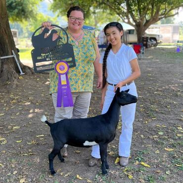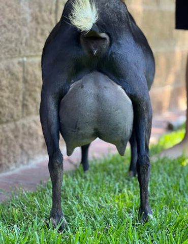 Her Dam, SGCH Bellafire BP Country Melody 1*M (EEEE 91 @ 2yrs 2m) swept all three rings at the first show of the season as a three-year-old. She was an impressive sight that day! She is also so very impressive in the milk bucket, milking 5.6 pounds at 41 days fresh into her second lactation.