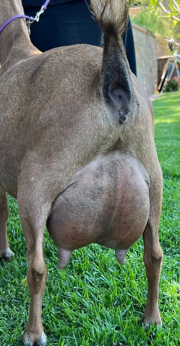 Rio is part of the ongoing joint herd management between Hidden Hills Nigerians and Slidewater Ranch so that we could get her on milk test and into the show ring. Her kids will be under the Hidden Hills herd name.